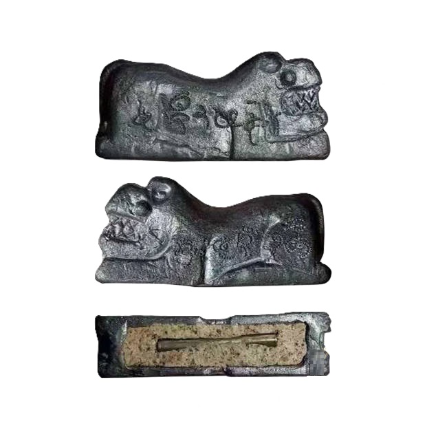 此虎乃是帕阿贊孔依照本寺廟前一大老虎雕像製作以大量寫上至尊虎符文經咒錫片錫條lek lai (流鐵)熔煉督造底部入老虎骨灰老虎洞穴土多種花粉經灰入至尊虎元神符管一支。
