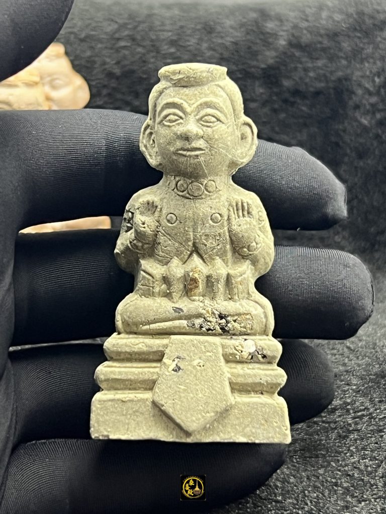 龍婆浸蘭為當代泰國修四面神法脈最具威望的高僧之一,師傅他同樣是十九大聖僧之一,他是公認禪定時能夠與四面神溝通,修行嚴謹,法門純正。此次製作的「碰派平頭古曼童」為 2568 年代表作。